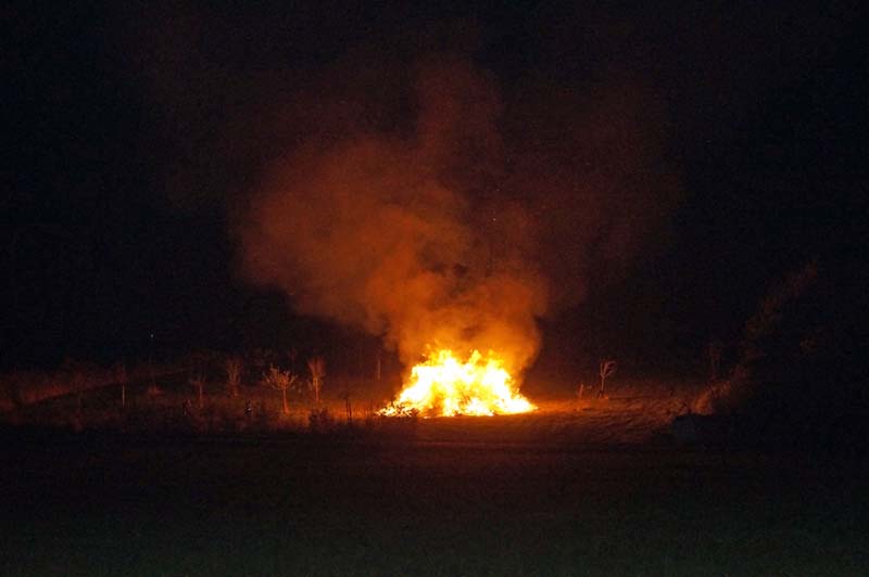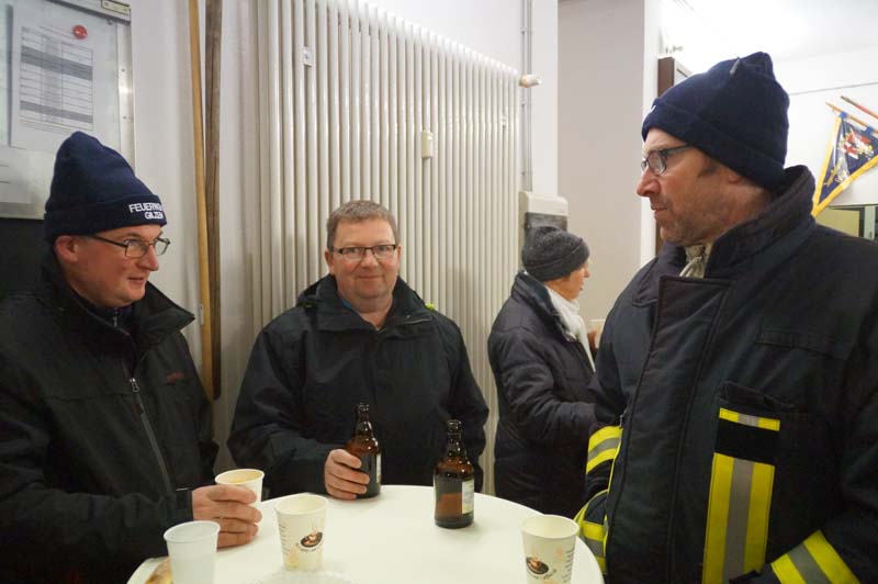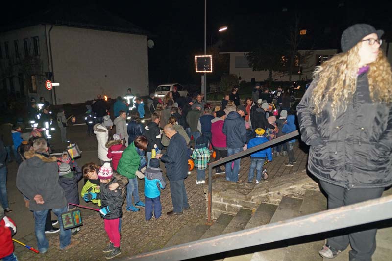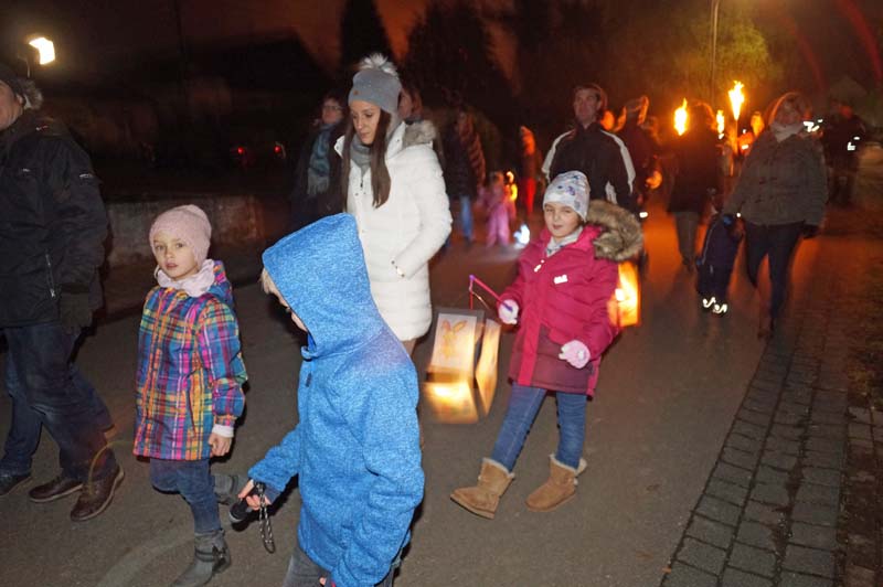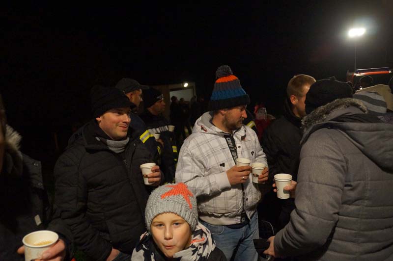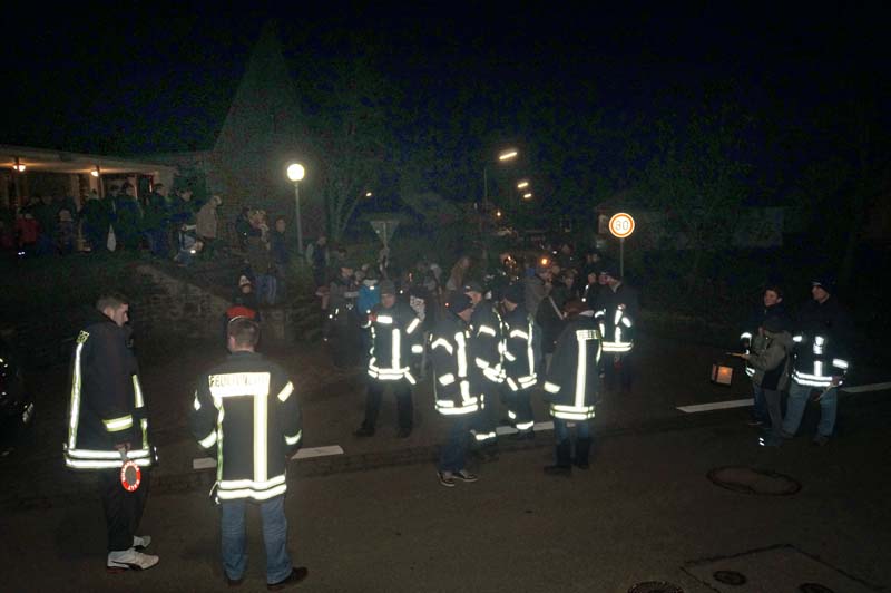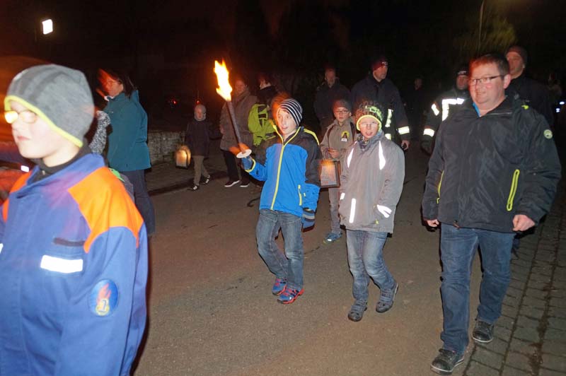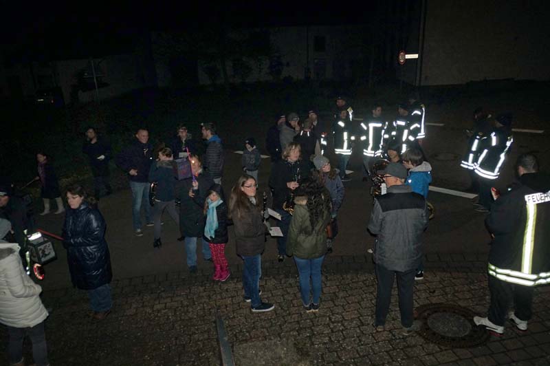 Hier wartete schon die Freiwilliger Feuerwehr Gilzem, die Eisenacher Musikanten und viele weitere kleine und große Teilnehmer/innen. Es war kalt, aber trocken und die stimmungsvolle Feier hatte alle erwärmt.