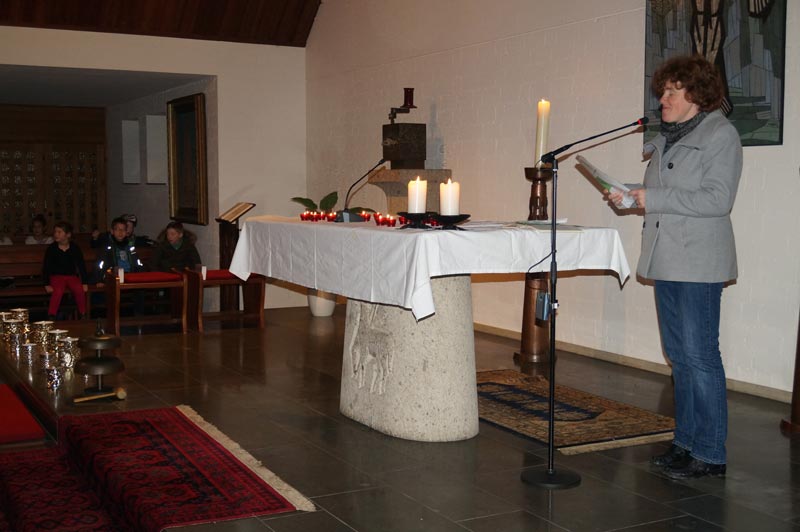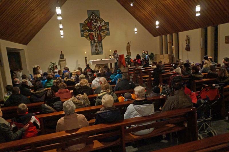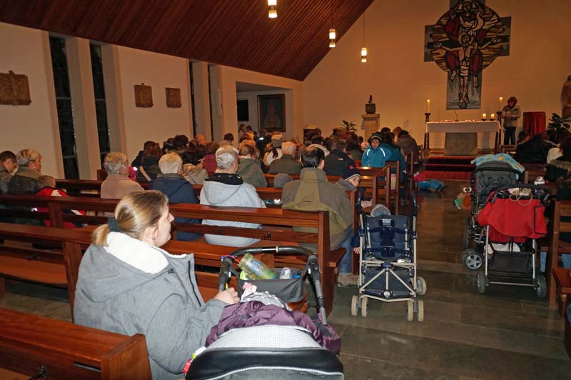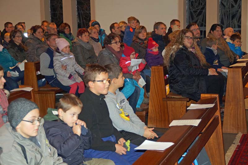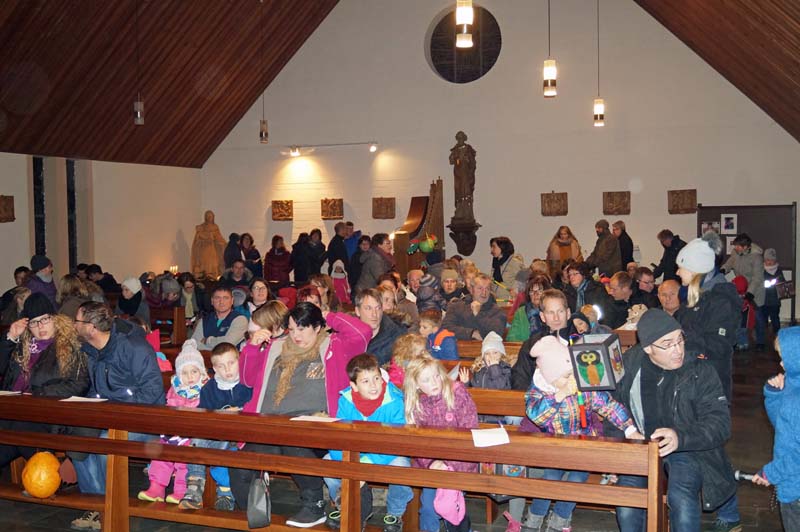 Strophen aus dem St. Martinslied, Fürbitten und Segensgebete folgten. Rita Wirtz-Fey gestaltete mit allen Anwesenden die Feier zu einem besonderen Erlebnis für Klein und Groß.