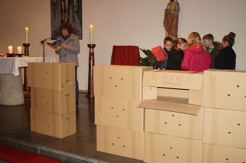 Die Messdiener baten um eine kleine Spende für ein Kinderdorf in Bombay/Indien bevor es dann mit dem Lied „Ich geh mit meiner Laterne“ vor die Kirche zur Aufstellung des Martinszuges ging.