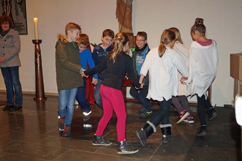 Rita erzählte dann eine Geschichte, die von Messdiener/innen gespielt wurde.