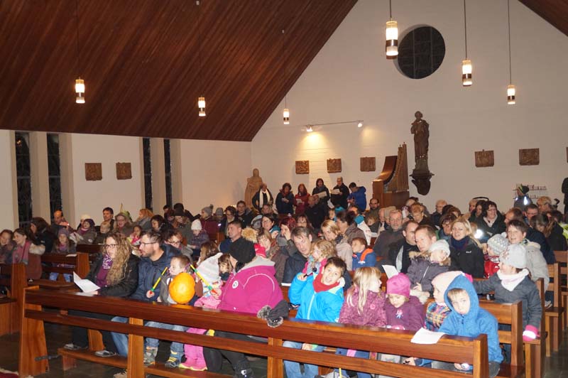 Die Leiterin der Gilzemer Messdiener, Rita Wirtz-Fey, begrüßte alle Kinder und Erwachsenen in der Gilzemer Kirche „St. Johannes der Täufer“. Rita zeigte sich stolz und dankbar, denn rd. 150 Teilnehmer waren zur Martinsfeier mit anschließendem Umzug gekommen.