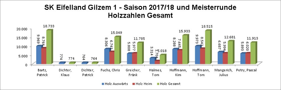 | 1 | SK Eifelland Gilzem 1 | 37 | 771 | 90.821 | 26 | 458 | 46.293 | 11 | 313 | 44.528 |