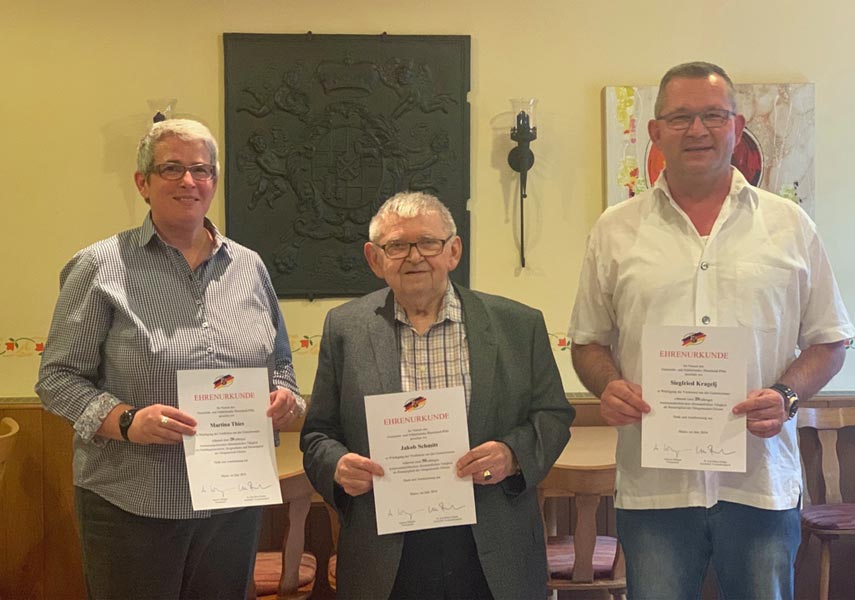 v.l.n.r.: Martina Thies für 20 Jahre, Jakob Schmitt für 50 Jahre und Siegfried Kragelj für 20 Jahre.