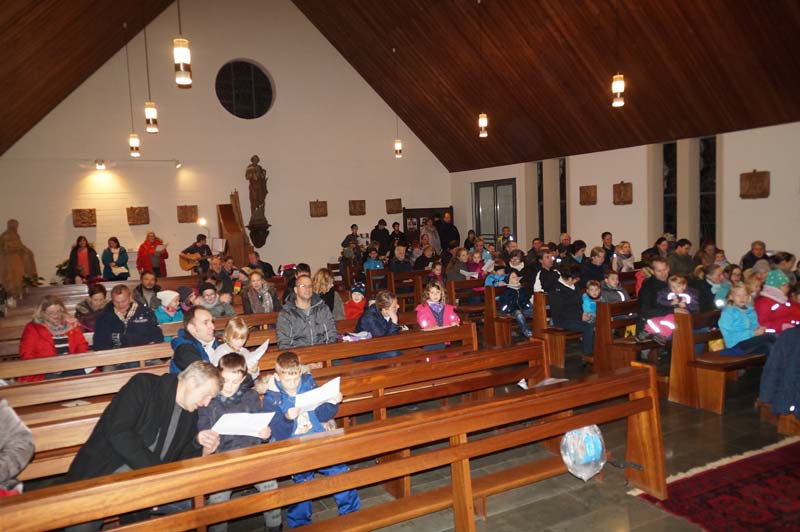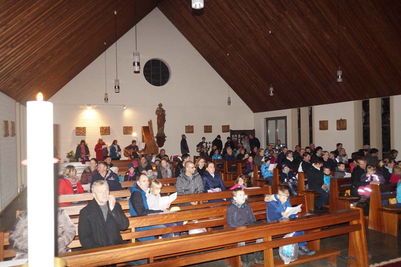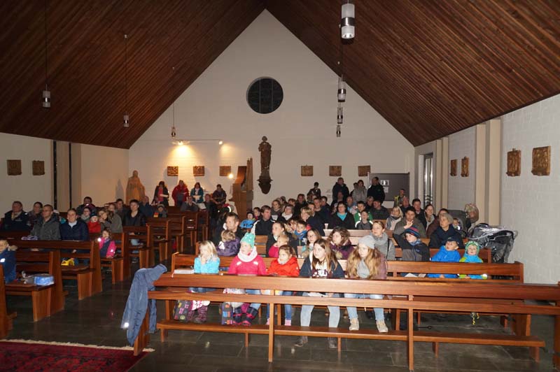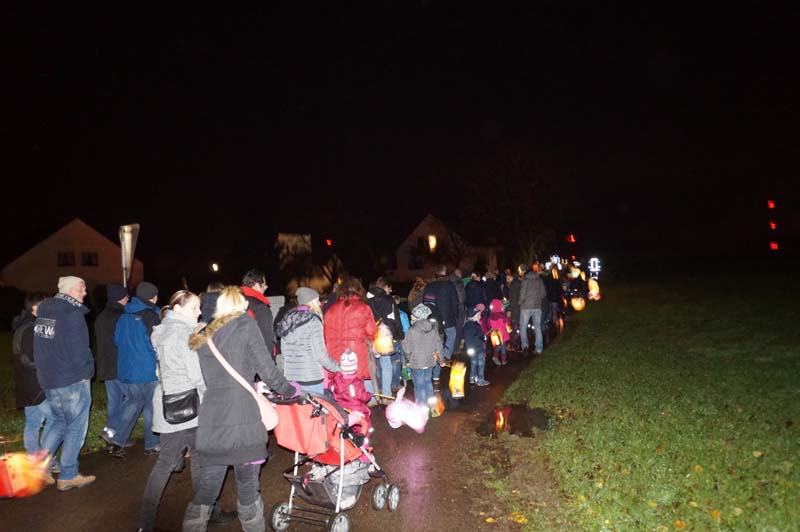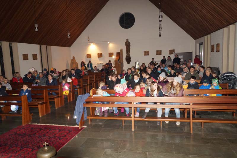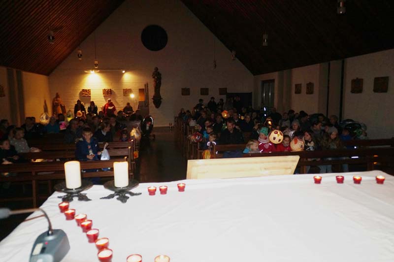 Trotz Regenwetter konnte die Leiterin der Gilzemer Messdiener, Rita Wirtz-Fey, wieder weit über 100 Kinder und Erwachsene in der Gilzemer Kirche „St. Johannes der Täufer“ zur Martinsfeier begrüßen.Die Laternen, das Martinsfeuer und die Augen der Kinder leuchteten wohl so hell, dass die ganze Veranstaltung ohne einen Regetropfen begangen werden konnte.
