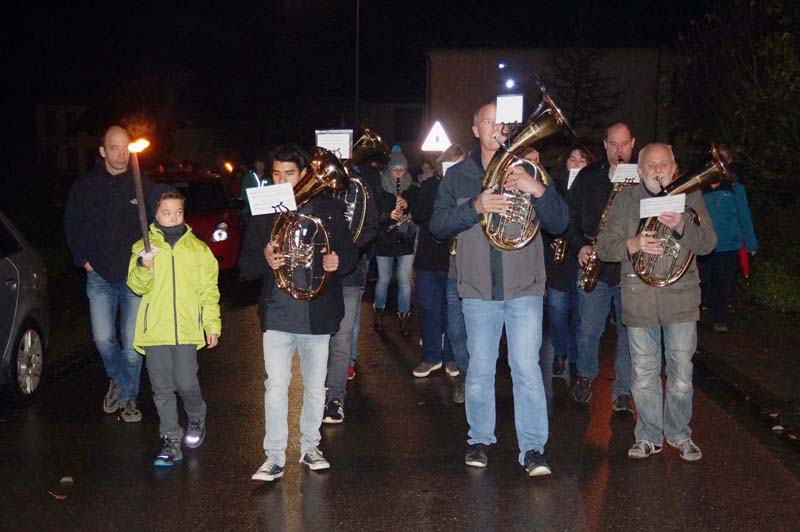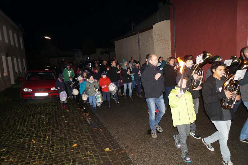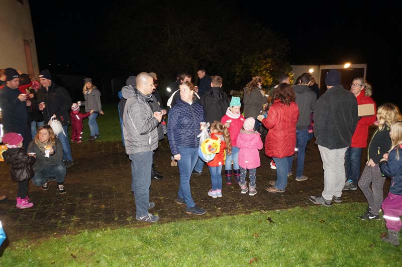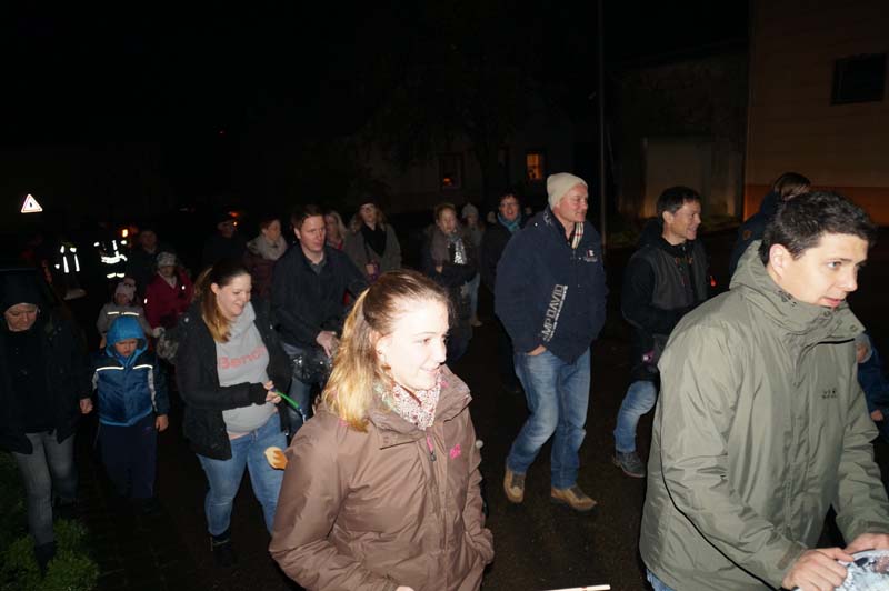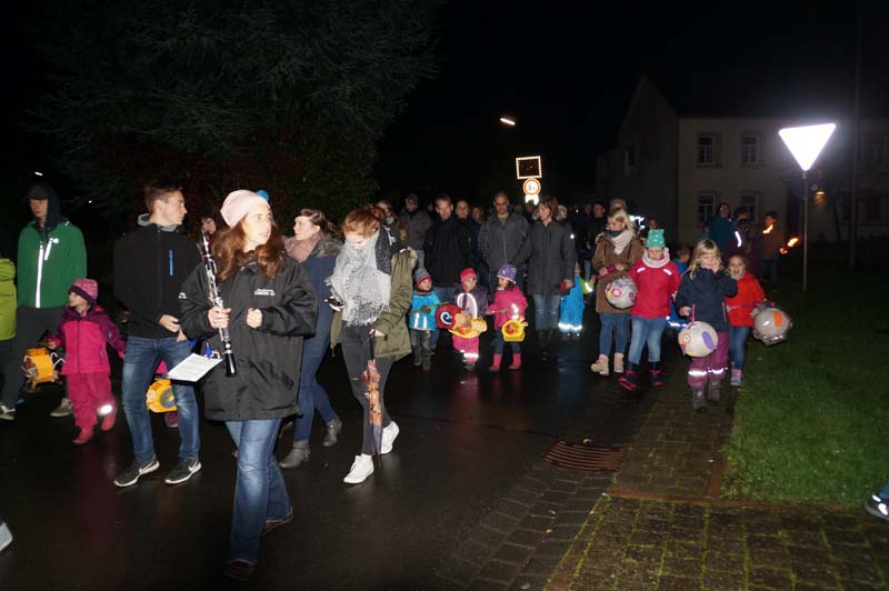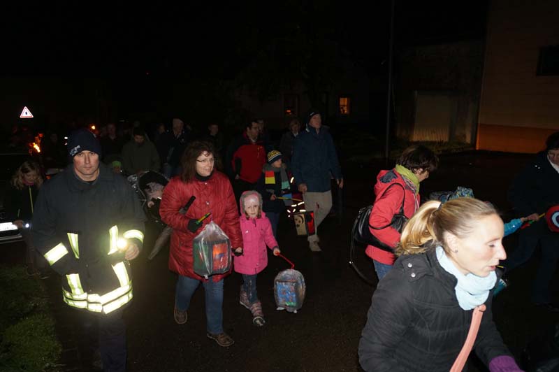 Draußen wartete die Freiwillige Feuerwehr Gilzem und die Eisenacher Musikanten, die den Martinszug durch das Dorf, am Martinsfeuer vorbei bis hin zum Gemeindehaus, begleiteten.