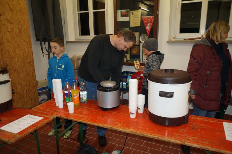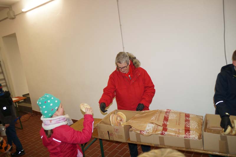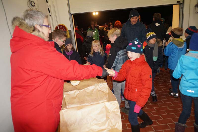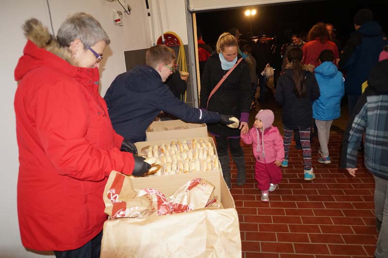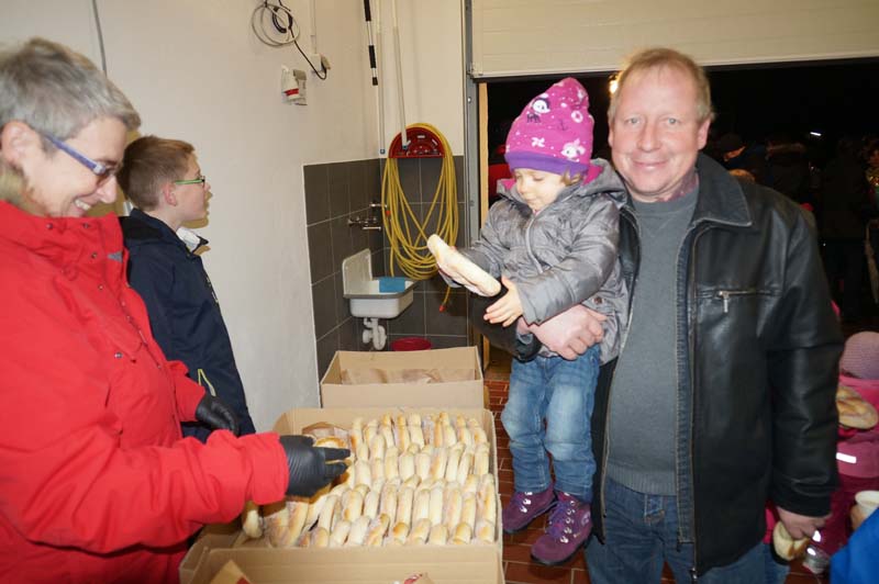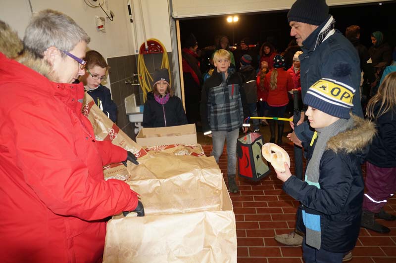 Dort wartete schon Ortsbürgermeisterin Martina Thies mit leckeren Martinsbrezeln. Die Messdiener hatten Minipizzas gebacken, die Jugendfeuerwehr sorgte für Getränke.Bei netter Unterhaltung genossen alle wieder die Martin(a)sbrezeln und die Leckereien der Messdiener und Jugendfeuerwehr.
