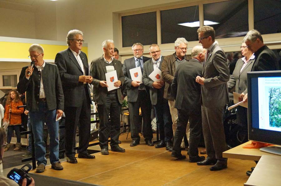 Dann erfolgten die Ehrungen der teilnehmenden Gemeinden und der Sieger durch unseren Landrat Dr. Streit. Neben der Urkunde erhielt jeden Gemeinde auch noch einen Gutschein für einen Ahornbaum. Dieser wird an die Gemeinde geliefert und kann im Frühjahr gepflanzt werden. Unsere Martina und wir alle waren stolz, auch auf den zweiten Platz, haben viele neue Erkenntnisse für unser zukünftiges Gemeinschaftsleben in Gilzem gewonnen.