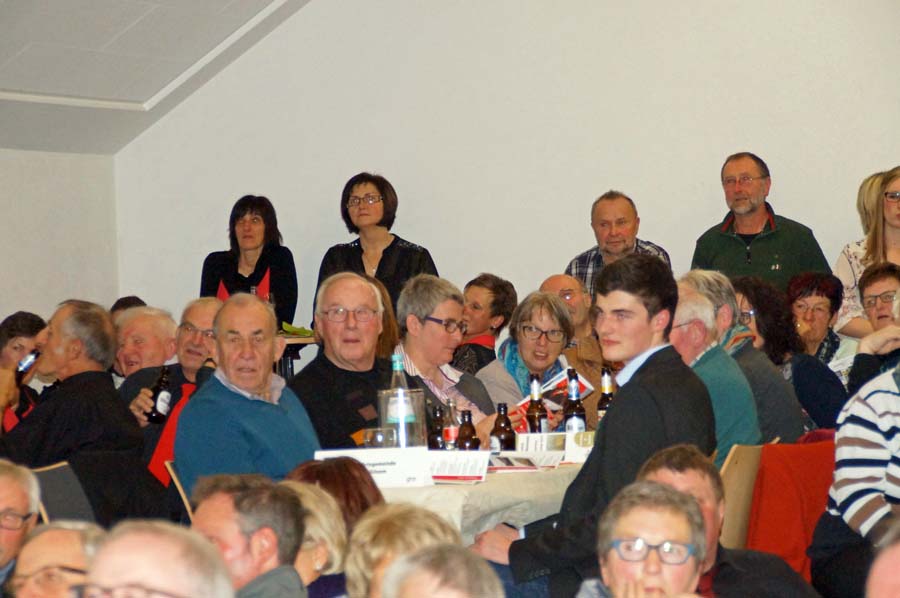 Bereits beim Empfang im Dorfgemeinschaftshaus Geichlingen spürten wir die angenehme und professionell Eifeler Gastlichkeit. Man nahm uns unsere Mäntel ab, nummerierte sie und man führte uns zu unseren reservierten Plätzen, direkt neben der Delegation unserer Nachbargemeinde Niederweis.