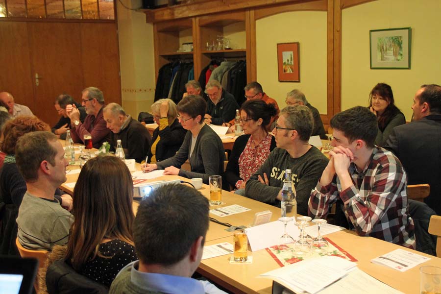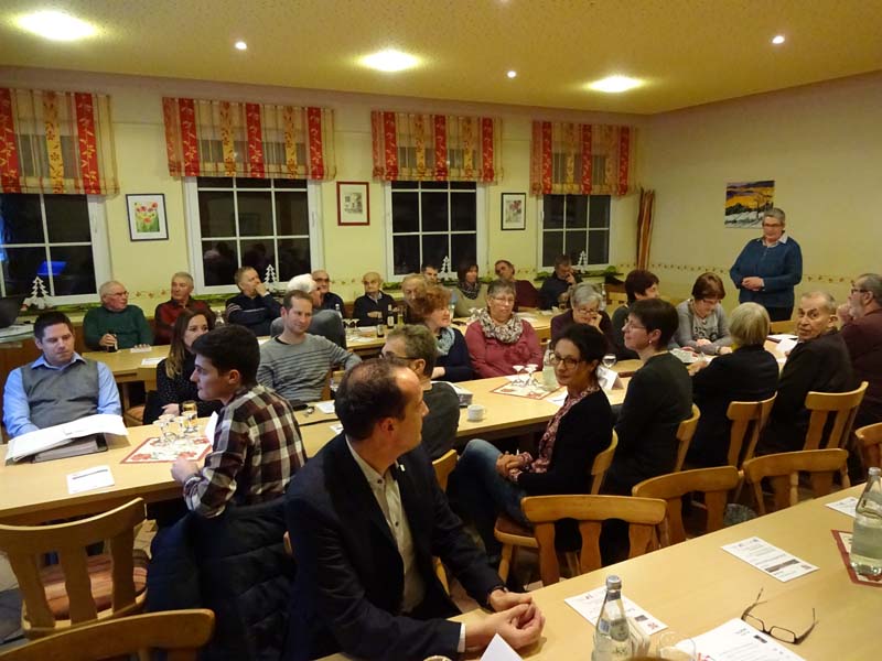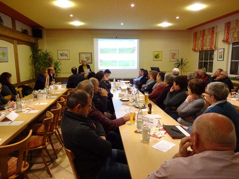 Gestern, Donnerstag, 14.12.2017, 18:30 Uhr, fand der Gilzemer Dorfcheck im Gasthaus Dichter seinen ersten Abschluss.Ortsbürgermeisterin Martina Thies konnte viele geladene Gäste begrüßen, darunter vom Eifelkreis Bitburg-Prüm: Kreisbeigeordneter Rudolf Rinnen, Dipl.-Ing. Andreas Heiseler, M.A. Raumplanung Katharina Scheer; von der Verbandsgemeindeverwaltung Südeifel: Sachbearbeiterin Monika Spoden, Sachbearbeiter Christian Calonec-Rauchfuß (Bürgermeister Petry und andere Vertreter waren durch die gleichzeitig stattfindende Verbandsgemeinderatssitzung entschuldigt.)