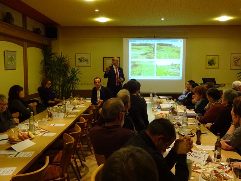 Die Arbeitsgruppenvorsitzenden, Elisabeth Hoor (AG1) und Christian Hoffmann (AG2) gaben den Anwesenden einen kurzen Überblick über die stattgefundenen Arbeiten innerhalb der Arbeitsgruppen. Kümmerer Winfried Hoor stellte das gesamte Projekt bis zum Abschlussbericht vor.
