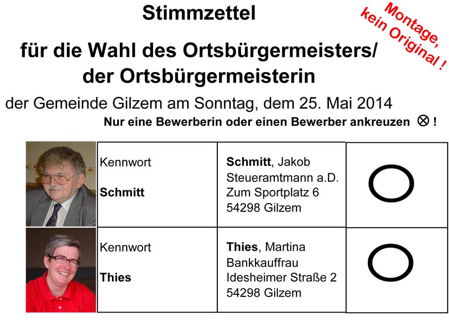 Aufruf zur Erstellung eines Wahlhilfsblattes für die Mehrheitswahl des Gemeinderates Gilzem am 25. Mai 2014